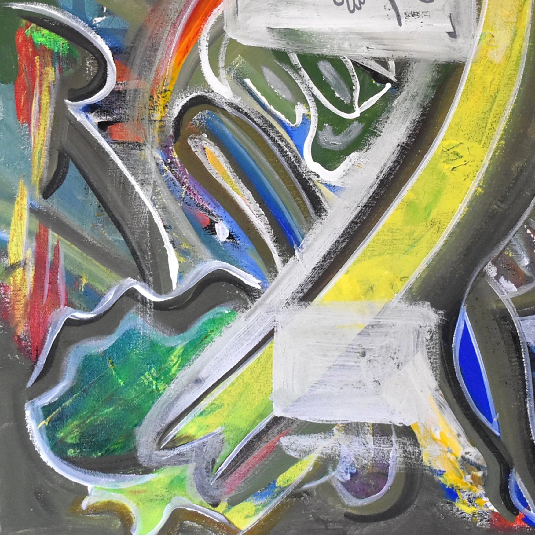 The palette is rich with deep grays, luminous yellows, and intense blues, all layered with a painterly finesse that gives depth and texture to the piece. The use of white and negative space is strategic, suggesting clarity and illumination amidst the surrounding complexity. Through this visual interplay, 'Filter' speaks to the multifaceted nature of understanding and the idea that truth is often a composite of many different perspectives. This painting invites viewers to ponder the veils of reality and the truths that lie just beyond our sight. It is a celebration of the unseen forces that shape our world and a testament to the artist's vision of the ethereal layers that connect the tangible to the intangible.