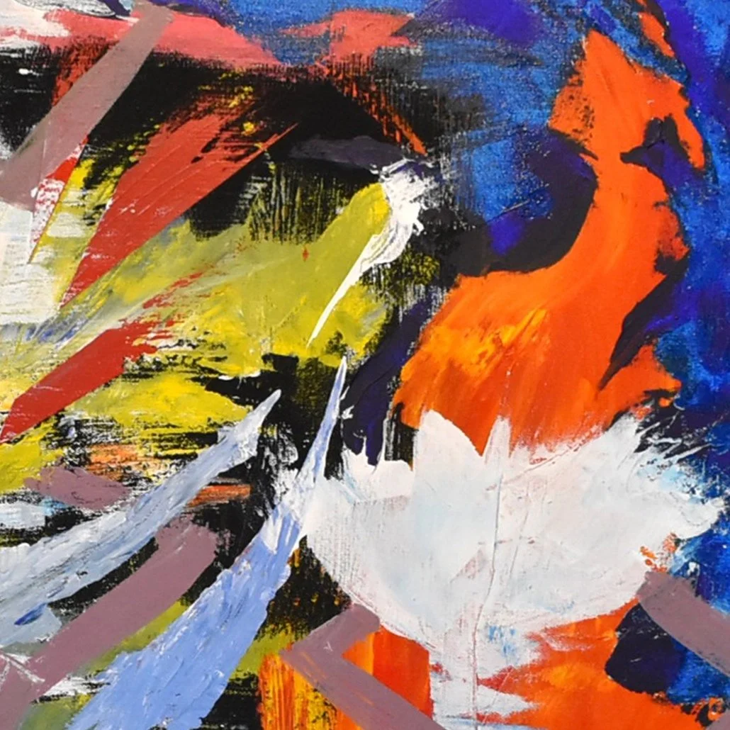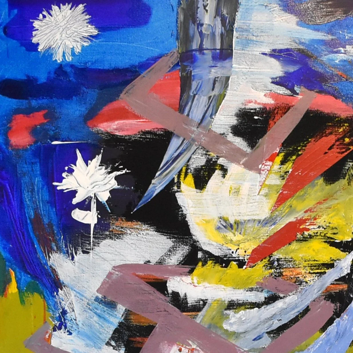 Inspiration is a dynamic and arresting canvas that captures the electric and often ephemeral moments when creativity strikes. This painting is a visual symphony of energy, color, and movement, representing the beautiful chaos that ensues when inspiration takes hold. At the heart of the composition is a whirlwind of brushstrokes, each one contributing to the overall sense of a spontaneous burst of energy — the kind that fuels artists, writers, and thinkers alike. Bold blues and vivacious reds clash with stark whites, suggesting the heat and intensity of a creative fire, while softer pastels and neutrals hint at the clarity and calm that often follow an initial creative surge. Abstract forms and splashes of paint coalesce into a striking visual metaphor for the rush of ideas, the frenzy of innovation, and the unbridled joy of imagination unleashed. The interplay of abstract and representational elements, such as the plant-like figures, alludes to the growth and blossoming that result from these flashes of insight.